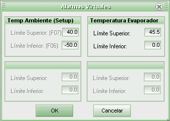Algunos modelos poseen alarmas en el propio instrumento y los valores de los límites deben ser informados en el setup. Así, en este cuadro de diálogo, los límites serán exhibidos solamente para consulta.